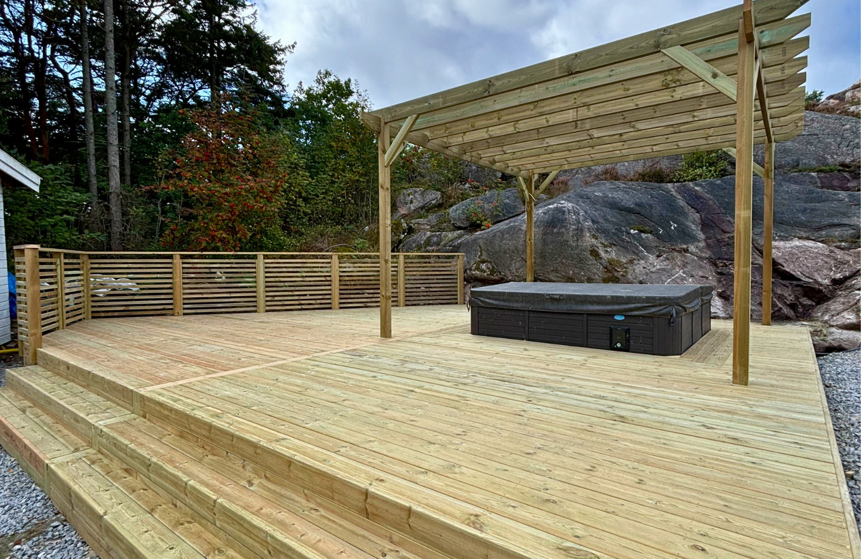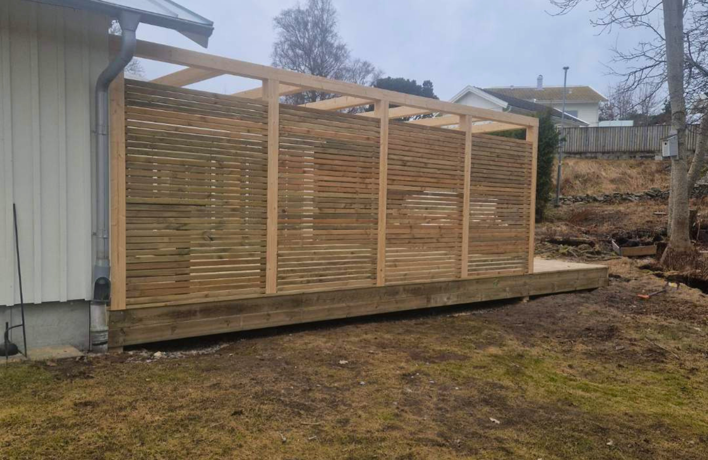 Vi bygger även trappor, räcken, insynsskydd och andra lösningar som gör uteplatsen mer praktisk, trygg och snygg.