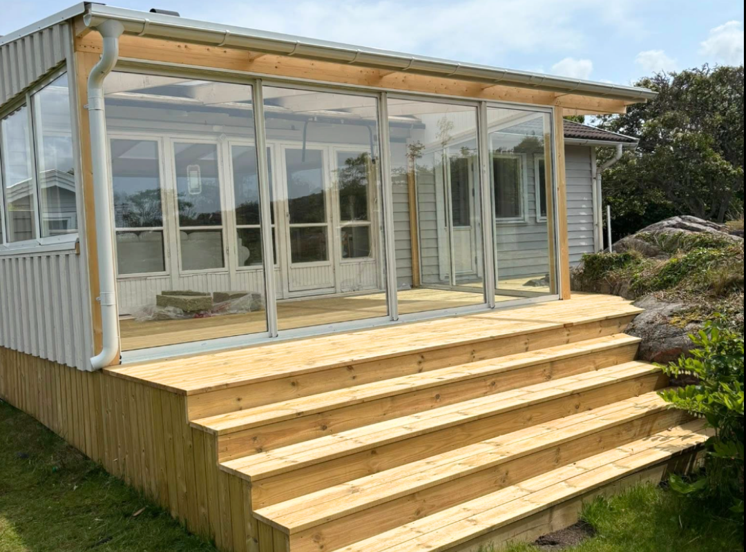 Med bas i Skärhamn hjälper S Bygg kunder på Tjörn, i Stenungsund och på Orust med altaner, uterum och andra byggprojekt för husets utemiljö. Oavsett om du vill bygga en ny altan, glasa in ett uterum eller skapa en mer genomtänkt uteplats hjälper vi dig från idé till färdigt resultat.